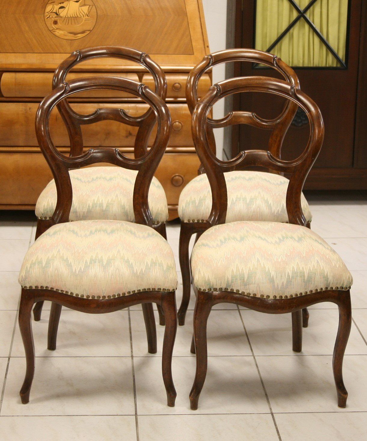 Vier elegante und restaurierte Polsterstühlen aus der Louis Philippe Epoche um 1850/1860.