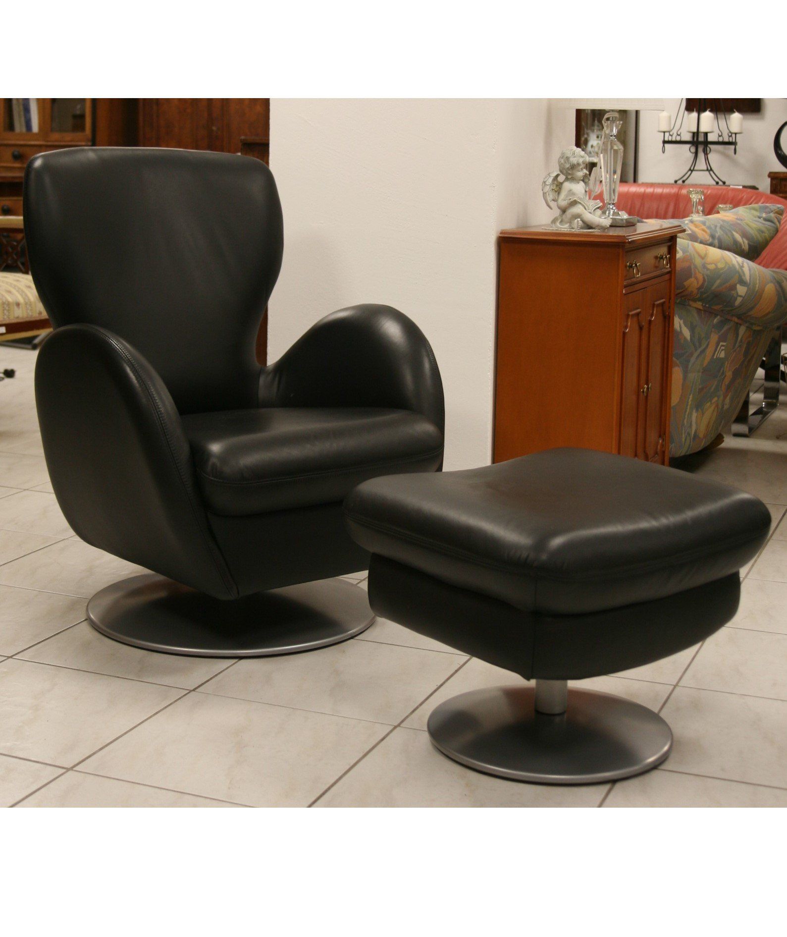 Schönes Design spricht für sich. Der originale Koinor Sessel mit Hocker lehnt sich an das in der Designgeschichte bekannte Design des Egg Chairs von Fritz Hansen und Arne Jacobsen an.